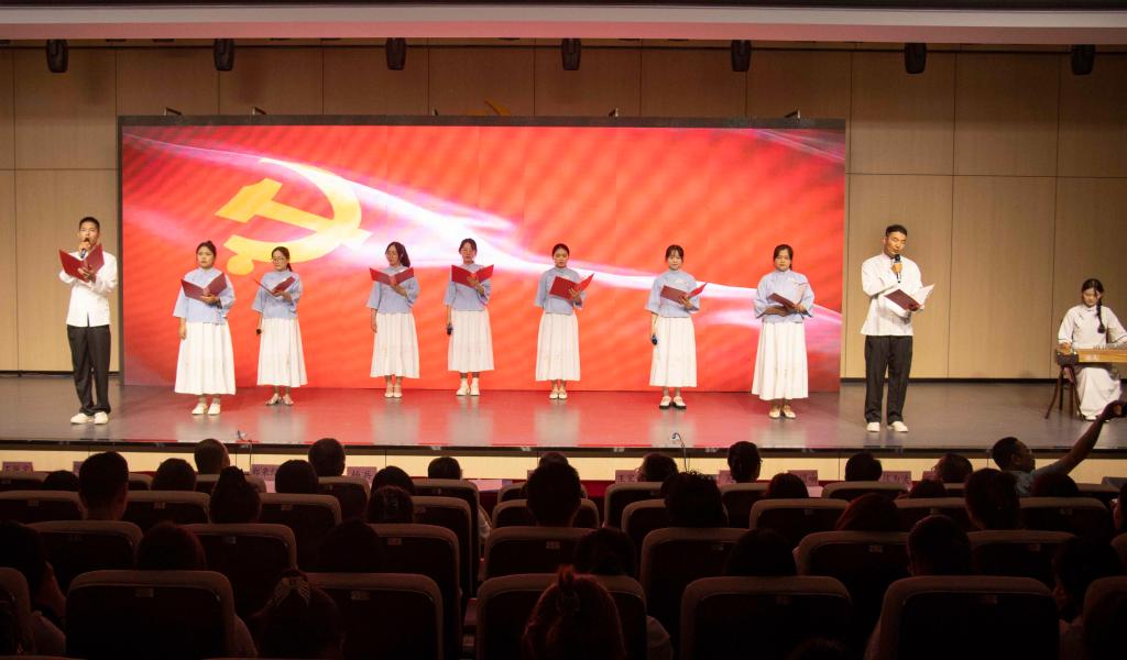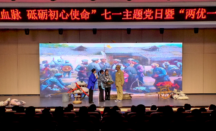 各党总支(直属党支部)以丰富多彩的节目,表达对党的生日的深切祝福,致敬党的光辉历程。马克思主义学院党支部表演的舞台剧《淮北红脉:车轮滚滚永向前》,再现淮北红色岁月里军民一心的奋斗故事,以激昂演绎传承红色基因;教育学院党总支带来的《我和我的祖国》《不忘初心》歌曲,用嘹亮歌声诉说教育工作者对祖国的深情,传递育人初心与时代使命;经济与管理学院党总支演唱的《灯火里的中国》,结合光影与舞姿,展现新时代中国的万家灯火,讴歌党引领下的温暖盛世;机电与建筑工程学院党总支朗诵的《不朽》,以铿锵之声致敬革命先烈,在追忆峥嵘岁月中传承英雄精神,让“不朽”信念激荡人心;能源材料与化工学院党支部演出的《心中的旗帜》,以炽热表演诠释对党的理想信念坚守,让精神旗帜在党日活动中高高飘扬。