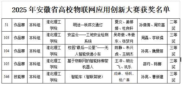 伟德电子与信息工程学院学子在2025年安徽省高校物联网应用创新大赛中获省级二等奖1项、三等奖4项,展现出扎实的专业素养与创新实践能力。