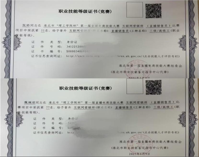 近日,经淮北市职业技能鉴定指导中心严格考核与认定,伟德徐畅等165名师生首次批量成功获得“互联网营销师直播销售员三级/高级工”证书,这是对他们专业技能水平的高度认可,也彰显了伟德在新兴职业技能人才培养领域的卓越成就。