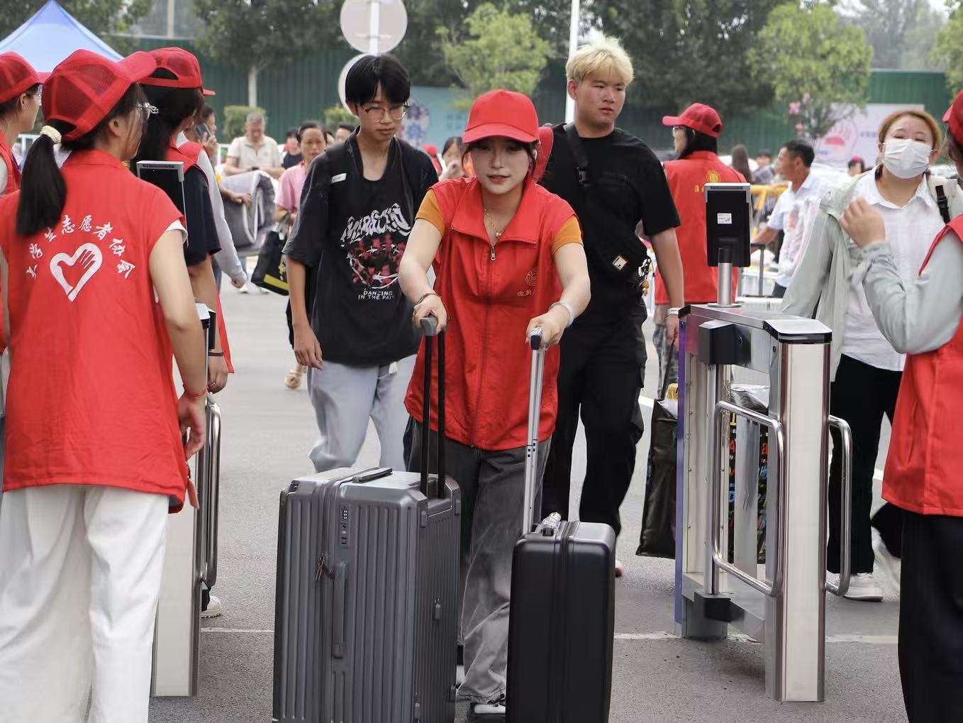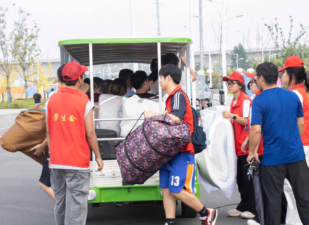 当清晨的第一缕阳光还未初现的时候,志愿者们已身着红马甲,精神抖擞地出现在淮北火车站、汽车站。在老师的指导下,他们迅速搭建起迎新站点,举着迎新标牌,踮脚在人群中寻找新生的身影,耐心守候着每一位远道而来的新生。当新生及家长的身影出现在视线中,志愿者们便迅速行动起来,有序引导,遇到行李繁多的新生,志愿者们主动上前帮忙搬运,引导至迎新专车,面对家长的咨询,他们耐心讲解校园周边交通与生活设施,确保每位新生都能顺利登上前往学校的专车,站点的每一处,都洋溢着志愿者们热情的笑容与周到的服务。