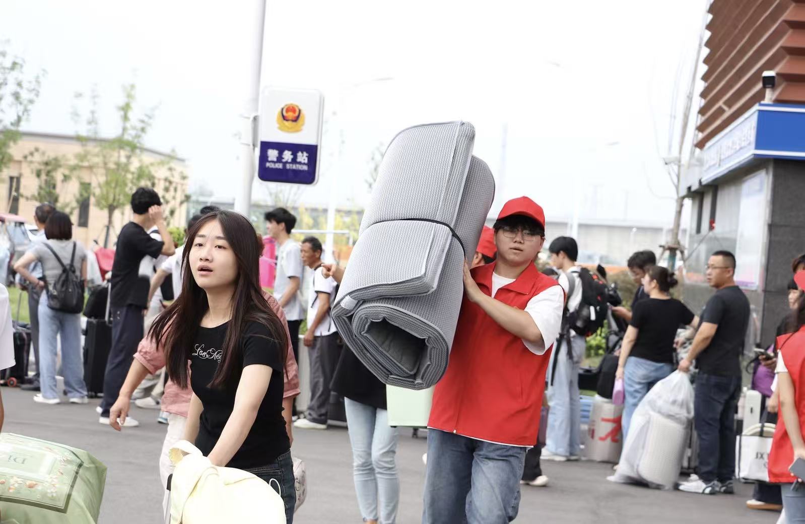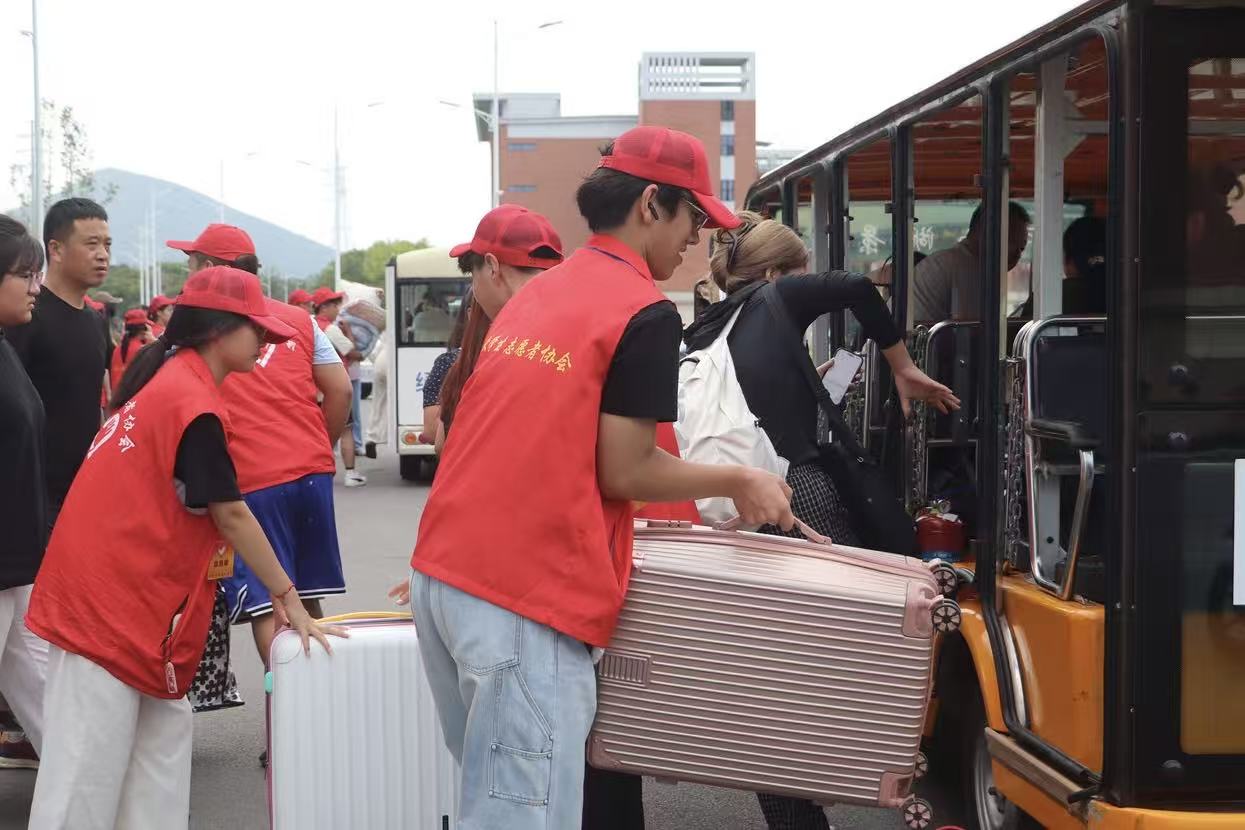 9月6日-9月7日,伟德国际victor1946官网迎来了2025级新生,相伴他们的除了亲友,还有一群身着红色马甲的身影——由学校学生组成的迎新志愿者们。从驻守交通枢纽接送新生,到引导新生报到流程、在各个报到点答疑解惑,志愿者们用细致的服务与热忱的笑容,为初入校园的新生们搭建起从陌生到熟悉的桥梁。