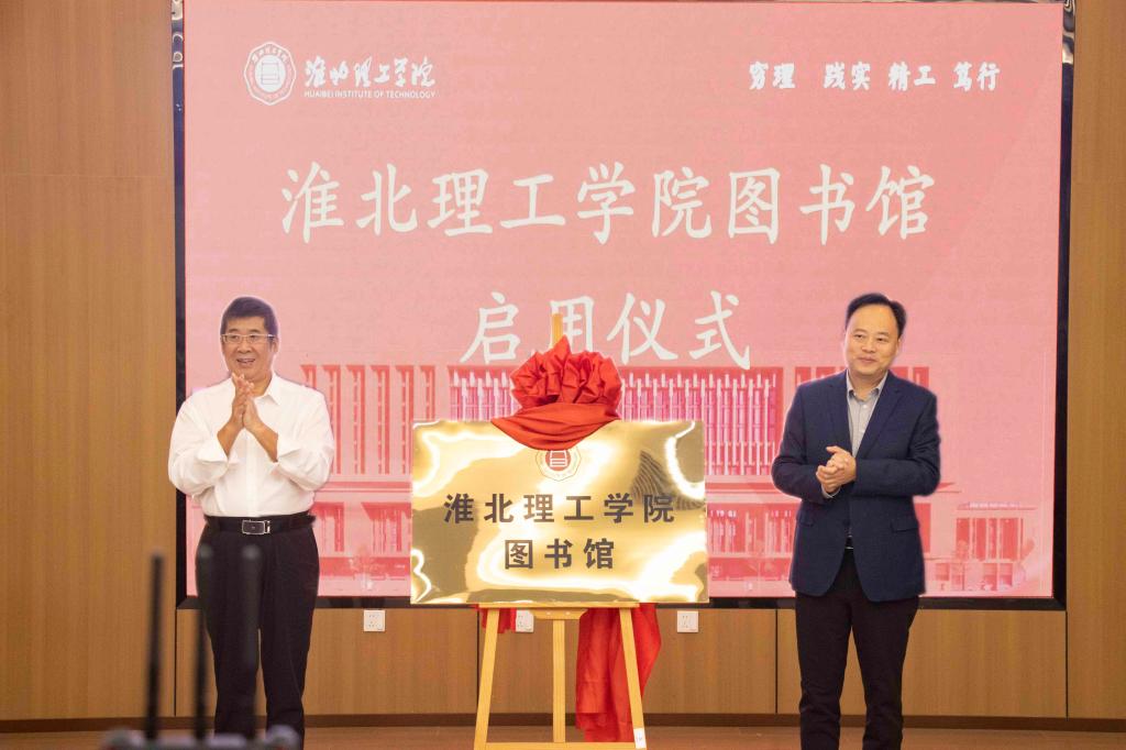 随后,在嘉宾和师生们的关注与期盼中,叶念乔和史庆超共同揭开红绸,为新图书馆揭牌。现场响起阵阵掌声,热烈喜庆的气氛达到了高潮。