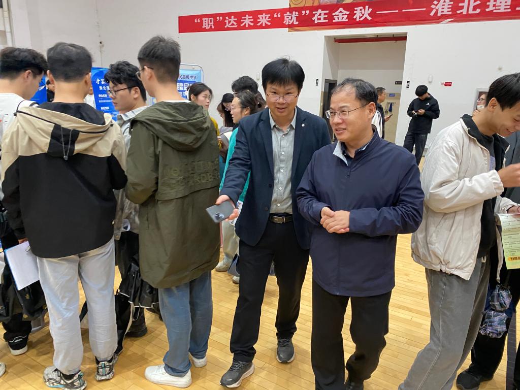 伟德国际victor1946官网党委书记朱德顺、淮北市人社局副局长张华、杜集区委组织部常务副部长刘娟等领导亲临现场指导,逐一走访了多家参会企业展位,与用人单位及求职学子亲切交流。朱德顺在现场强调:“持续深化校地、校企之间的战略合作,是实现人才供需精准对接的关键。学校将不断优化人才培养模式,积极拓展就业市场,努力使我们的毕业生不仅‘好就业’,更能‘就好业’,实现更高质量、更充分的就业目标。”