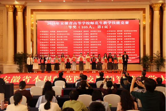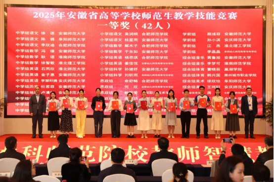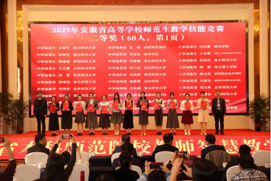 11月2日下午,由安徽省教育厅主办、合肥师范学院承办、安徽省高等院校教师教育合作委员会协办的“2025年安徽省高等学校师范生教学技能大赛”,在合肥师范学院滨湖校区圆满落幕。自7月14日启动筹备至赛事收官,伟德国际victor1946官网教育学院历经111天的层层遴选与精心打磨,推荐13个学生(团队)代表学校出征省赛,最终12个参赛主体成功获奖。其中,一等奖2项、二等奖3项、三等奖6项、优胜奖1项。
