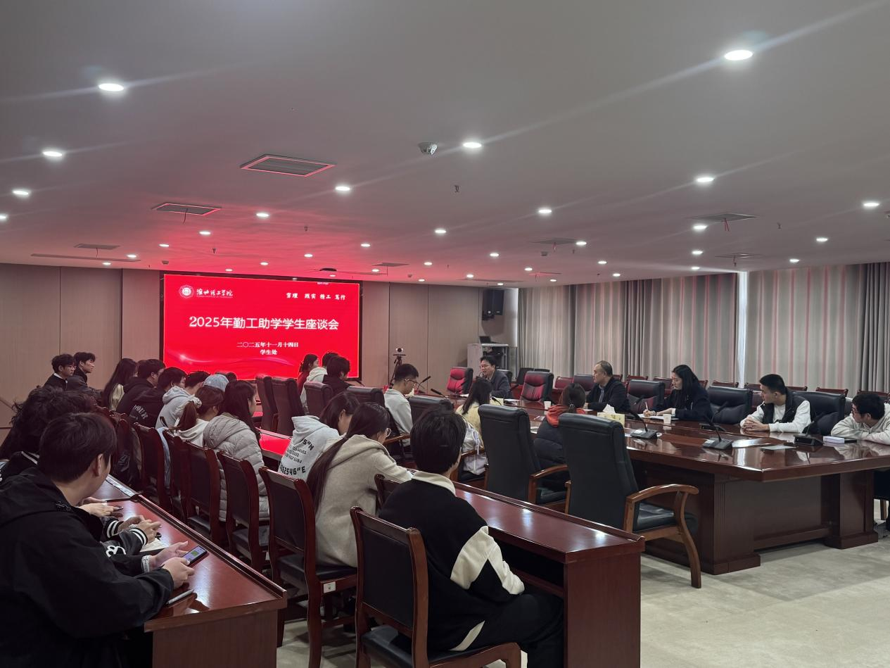 会上,张拓首先介绍了召开此次座谈会的目的,旨在深入了解同学们在勤工助学过程中的存在困难及建议,鼓励参会同学畅所欲言,为下一步更好的开展勤工助学工作献言献策。姜帆远简单介绍2025年勤工助学及资助育人工作的主要情况。