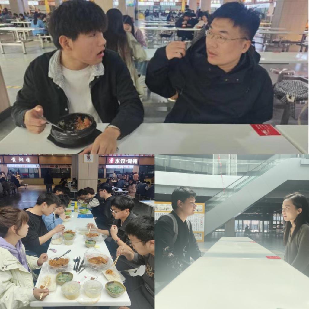二进餐厅促友情。学院学生管理人员走进餐厅与学生同桌进餐,不仅能促进师生情谊,而且可利用在与学生一同就餐的时间,叮嘱学生要严格遵守学校疫情防控,做好自我防护。在轻松的就餐过程中就学生比较关注的话题,进行全方位、多层次的交流与沟通。同时也便于了解掌握学生家庭情况,使师生间亦师亦友的和谐关系在食堂这个轻松的环境中得到充分的演绎,为学生工作更加高效开展奠定坚实的基础。