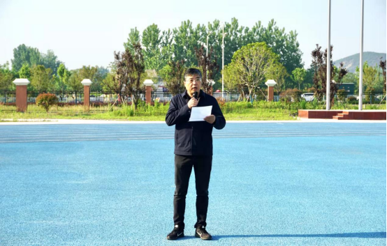 迎着朝阳,国旗护卫队踏着坚定的步伐,庄严入场。伴随着激昂的《义勇军进行曲》,鲜艳的五星红旗冉冉升起、随风飘扬,在场师生怀着对祖国无限的热爱,向着国旗行注目礼。