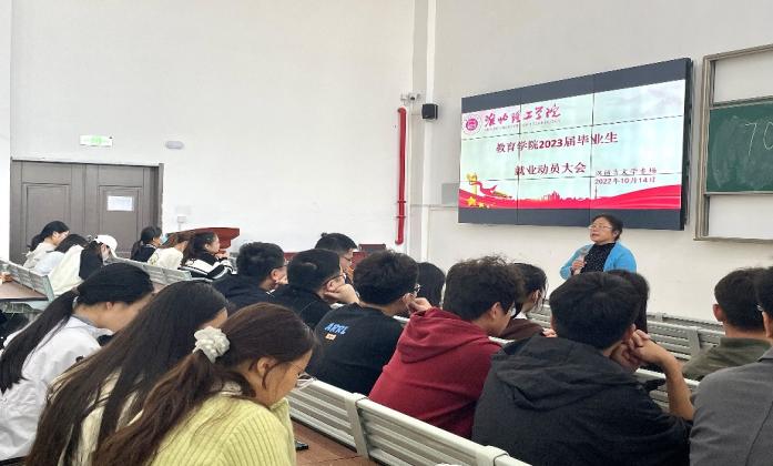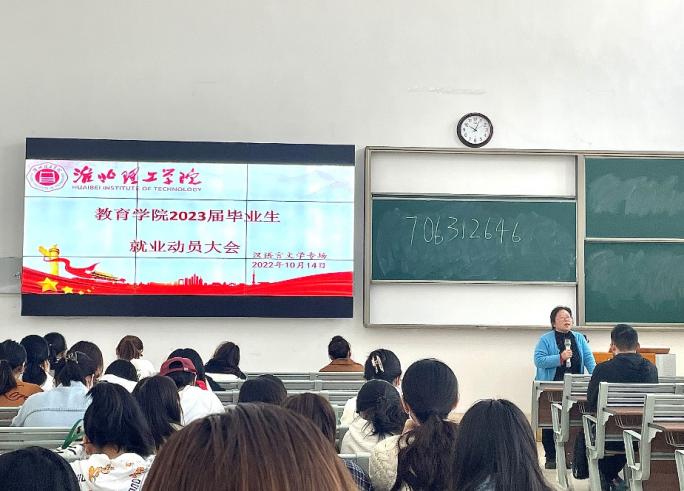 为贯彻落实学校就业工作要求,促进学院毕业生积极就业,提高就业质量,2022年10月14日上午,我院在1教121教室分专业召开2023届毕业生就业动员大会,学院分管副书记孟向红、辅导员彭慧敏、何茹雪带领2023届英语和汉语言文学专业毕业生分别参加了动员大会。