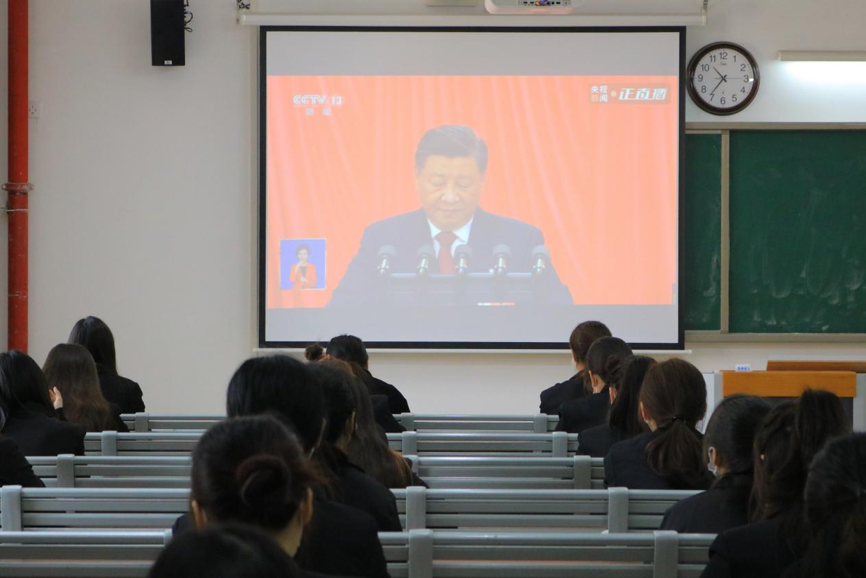 2022年10月16日上午,教育学院组织学生党员、学生代表分别在第2教学楼412教室、413教室、414教室、415教室集中观看党的二十大开幕会盛况。