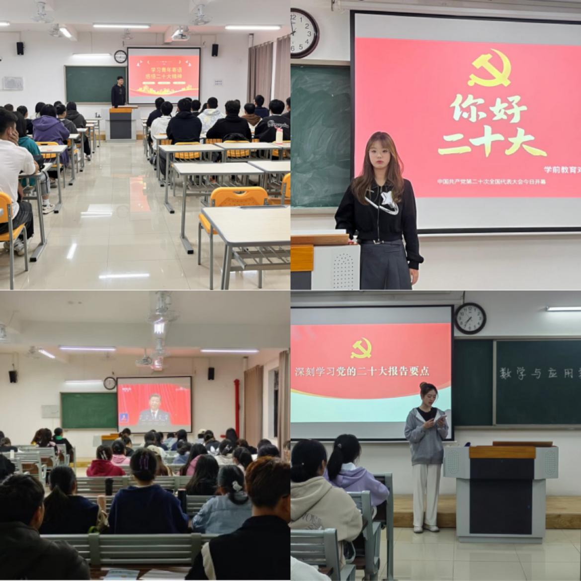 为鼓励教育学院青年学子深刻了解党的二十大会议内容,领会党的二十大精神,组织开展“学思践悟二十大,砥砺奋进新征程”班级学习活动,我院89个班级,积极响应,各班级团支部组织班级同学宣读二十大会议报告原文。