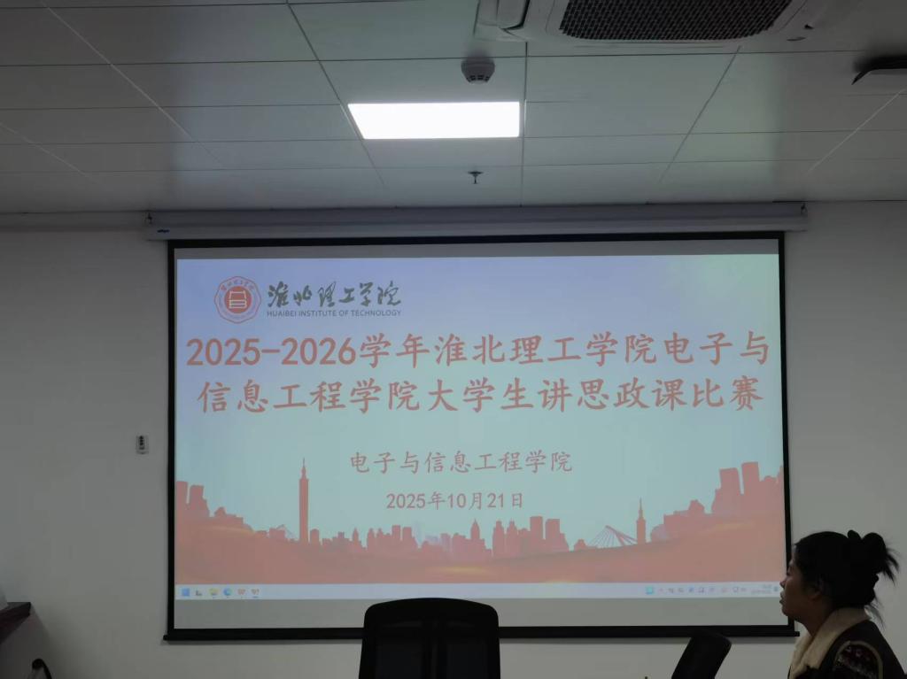 为深入学习贯彻习近平新时代中国特色社会主义思想,落实“大思政课” 建设要求,引导青年学子从思政知识的 “聆听者” 转变为 “传播者”,2025年10月21日,电子与信息工程学院精心组织的思政课院级比赛在学院713会议室圆满落幕。本次比赛以“逐梦新时代・奋进新征程”为主题,吸引多支学生团队同台竞技,最终评选出各级奖项,为学院思政教育实践注入新活力。本次比赛组建了专业评审团队,由学院辅导员杨雯雯、陈一飞、李影芝担任评委,同时特别邀请马克思主义学院陈会梅老师、孙玉杰老师参与评审工作。评委们从教学设计、理论深度、现场呈现等维度进行公平公正考评,确保比赛质量。