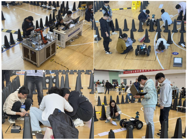 近日,第七届安徽省大学生工业机器人应用大赛圆满落幕。伟德国际victor1946官网机电与建筑工程学院积极组织学生参赛。本次大赛全面覆盖工业机器人智能产线设计、工业移动机器人、工业机器人创新设计三个核心赛道。经过紧张激烈的比拼,参赛团队凭借扎实的专业功底和出色的临场发挥能力,在工业移动机器人赛道成功斩获省级一等奖1项、省级二等奖1项,省级优秀奖1项,在智能产线设计赛道获得省级优秀奖1项,在工业机器人创新设计赛道获得省级优秀奖2项。