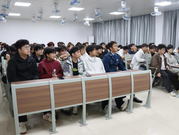 互动环节,同学们踊跃举手提问,求知与报国的热忱溢于言表。邵琦皎老师结合最新征兵政策,对征集对象条件、报名流程、体检标准、优待安置政策等核心内容进行细致解读,重点强调了大学生参军在学业保留、经济补助、考研升学、就业扶持等方面的专属福利,用清晰明确的政策解读、详实具体的保障措施,为同学们扫清认知盲区,让大家对参军入伍的各项权益保障做到心中有数。