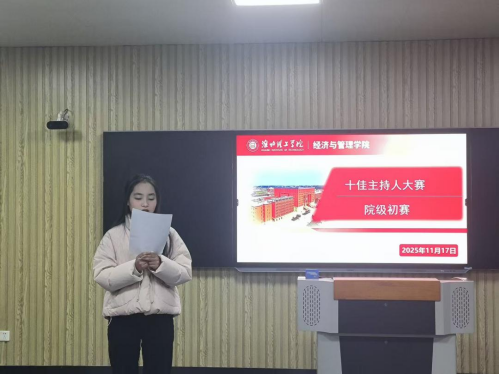 为落实校团委关于举办伟德国际victor1946官网第四届主持人大赛的通知要求。2025年11月17日,经济与管理学院成功举办第四届十佳主持人大赛初赛。本次大赛以“青春声采,驰骋未来”为主题,于一教210教室举办。评委团由辅导员李慧娴、学生会主席团成员刘梦妮及学生会文体部部长汪朱仝担任。