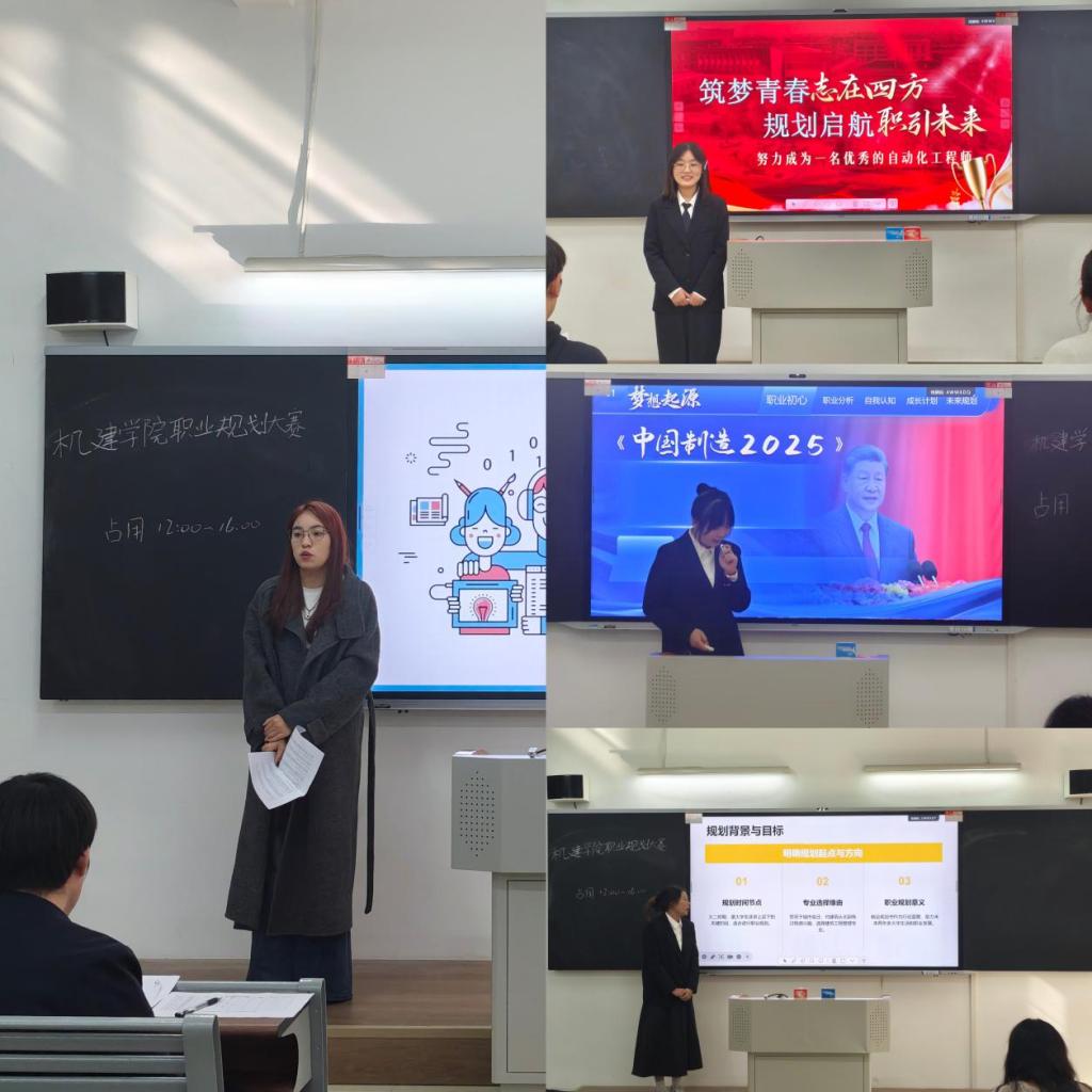 为响应学校关于第三届全国大学生职业规划大赛院内选拔赛的号召,强化学生生涯教育,提升就业竞争力,机电与建筑工程学院于11月13日至14日在二教112、二教115和二教116举办大学生职业规划大赛院级选拔赛。本次比赛由院书记助理邓金鑫、团总支书记张亚飞和学院辅导员以及班主任们担任评委。