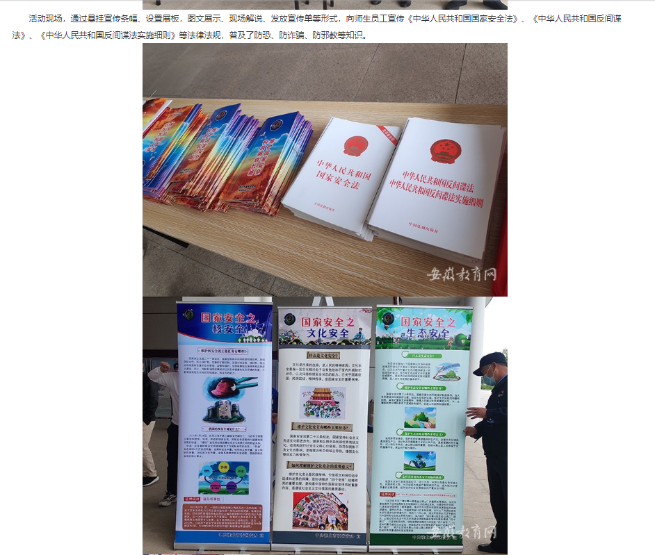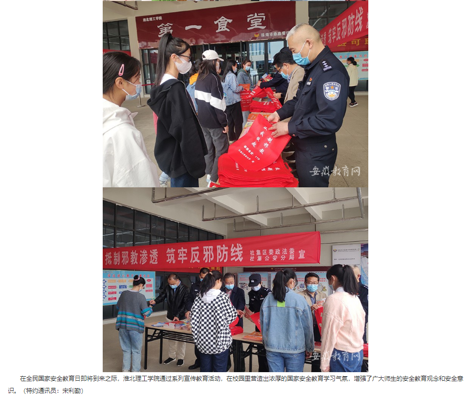 4月15日是第七个全民国家安全教育日,为加大学校国家安全教育力度,切实提高广大师生的国家安全意识,自觉履行维护国家安全,保守国家秘密的义务,4月13日上午,伟德国际victor1946官网联合淮北市杜集区委政法委、杜集区公安分局开展“国家安全教育日”宣传教育活动。安徽教育网在首页进行了报道。