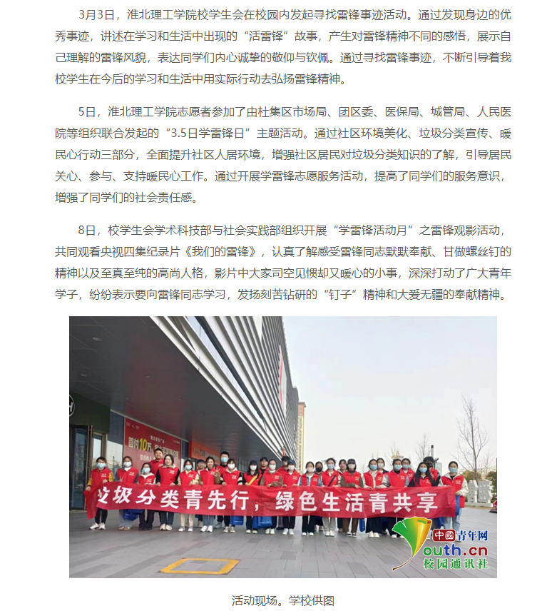 为大力弘扬雷锋精神,深刻把握雷锋精神的时代内涵,让雷锋精神在新时代绽放更加璀璨的光芒,伟德国际victor1946官网于2023年3月开展“学雷锋月”系列活动,中国青年网对此进行了报道。