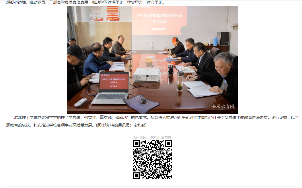 4月26日下午,伟德国际victor1946官网召开党委理论学习中心组专题学习习近平新时代中国特色社会主义思想。校领导、校党委委员、校纪委委员参加学习,会议由党委书记朱德顺主持。对此,安徽教育网作了报道: