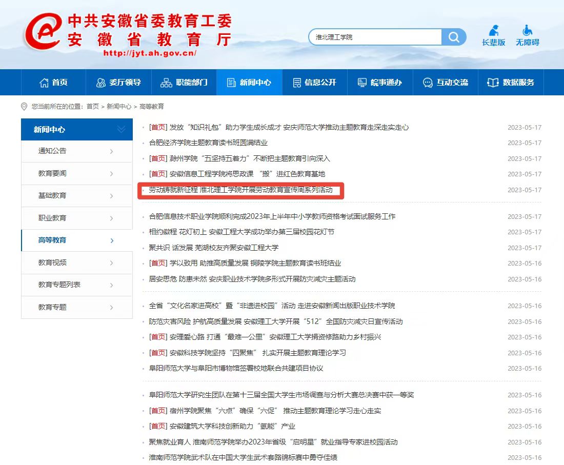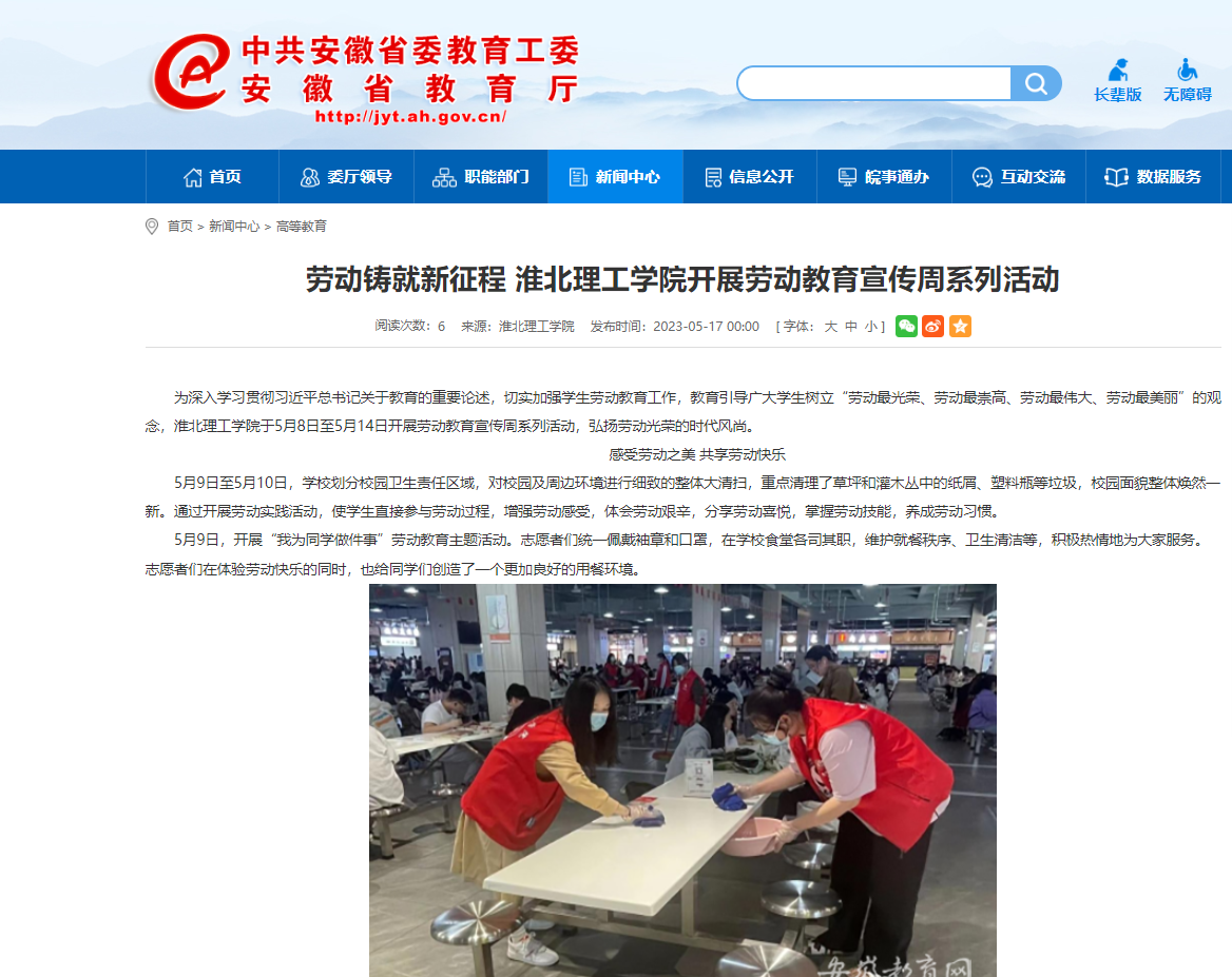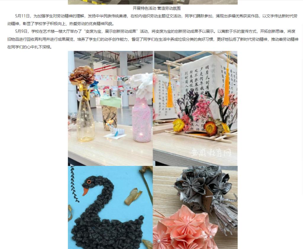 为深入学习贯彻习近平总书记关于教育的重要论述,切实加强学生劳动教育工作,教育引导广大学生树立“劳动最光荣、劳动最崇高、劳动最伟大、劳动最美丽”的观念,伟德国际victor1946官网于5月8日至5月14日开展劳动教育宣传周系列活动,弘扬劳动光荣的时代风尚。对此,安徽教育网作了报道: