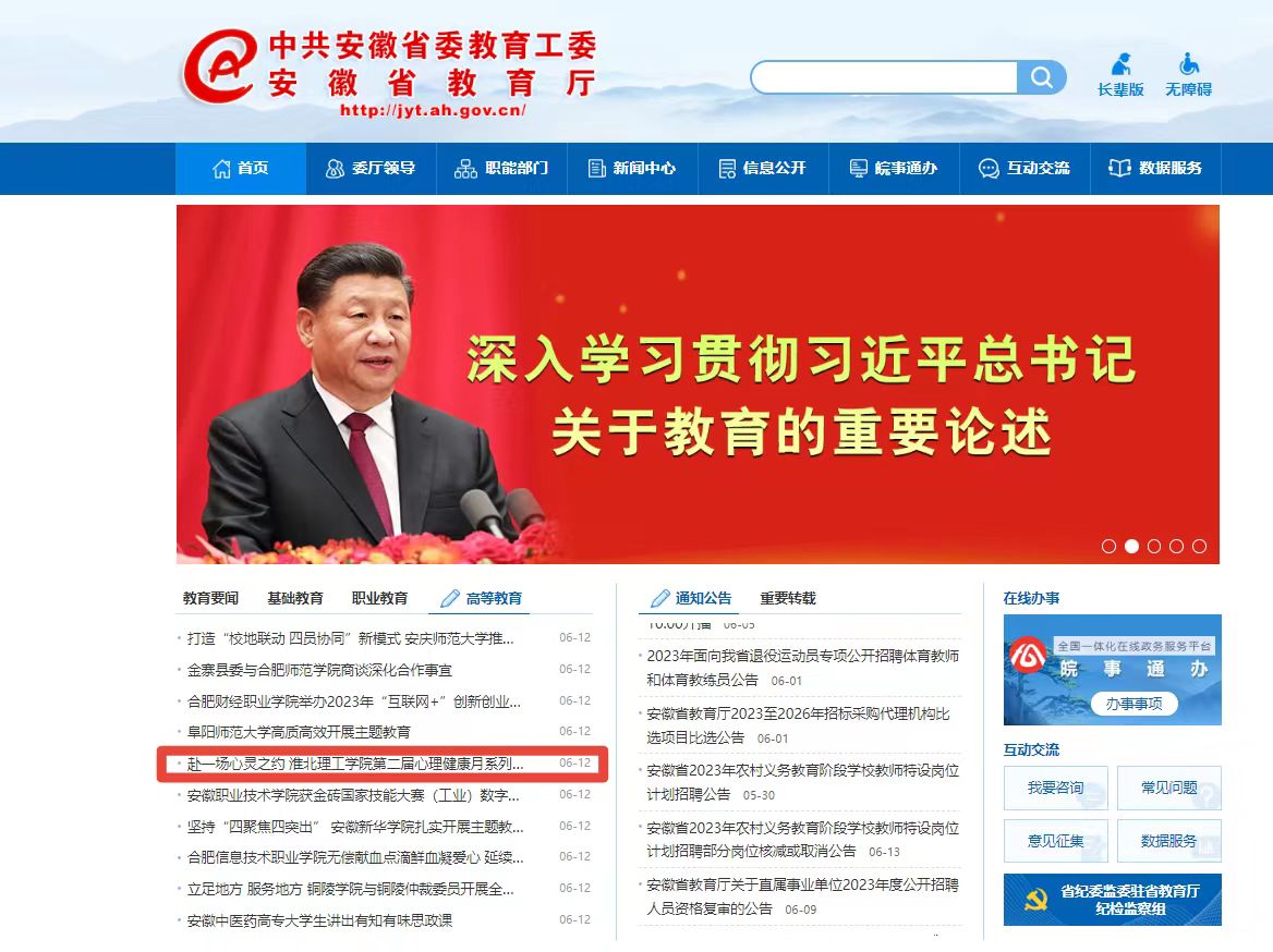 安徽省政府 安徽省教育厅 淮北市政府 淮北师范大学 淮北市教育局 中国教育和科研计算机网 国家高等教育智慧教育平台