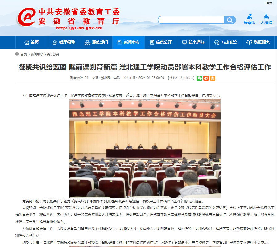 为全面推进学校迎评促建工作,促进学校教育教学质量向纵深发展,近日,伟德国际victor1946官网召开本科教学工作合格评估工作动员大会。对此,安徽教育网进行了报道: