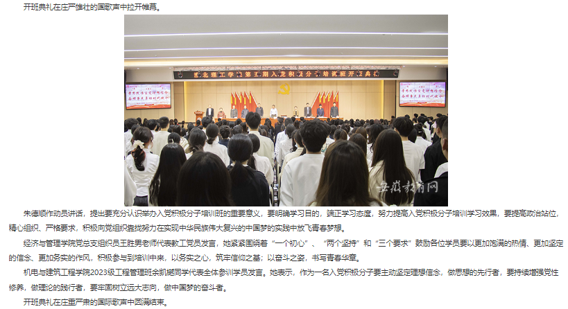 为贯彻落实党的建设总体要求,认真践行新时代党的组织路线,严把发展党员“入口关”,根据学校党建工作要求,4月17日下午,伟德国际victor1946官网举行第五期入党积极分子培训班开班典礼。对此,安徽教育网进行了报道: