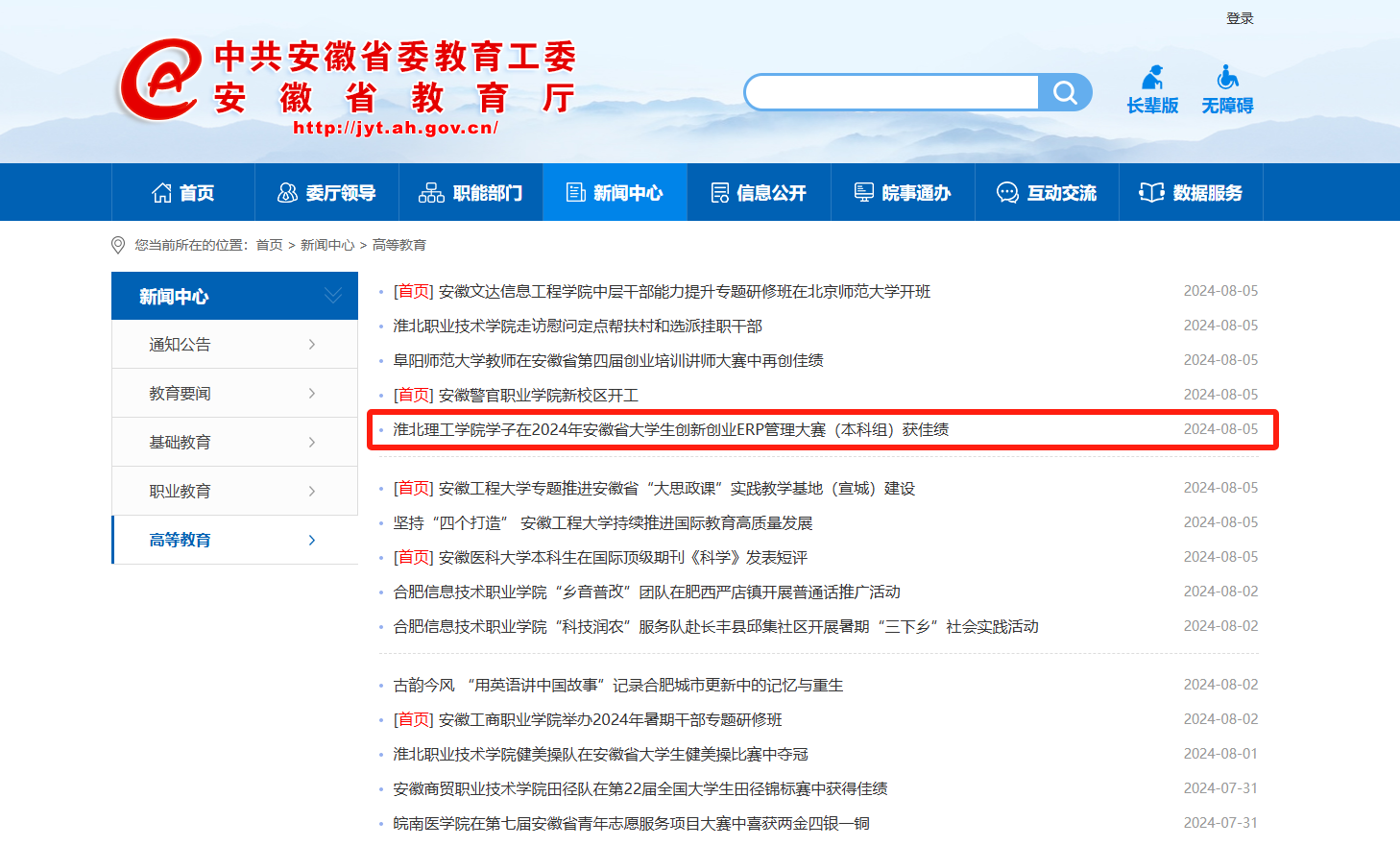 安徽省政府 安徽省教育厅 淮北市政府 淮北师范大学 淮北市教育局 中国教育和科研计算机网 国家高等教育智慧教育平台