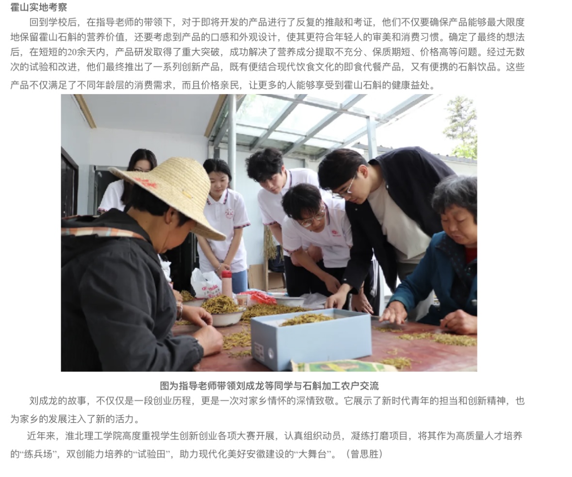 刘成龙,六安市霍山县上土市镇龙金村人,现就读于伟德国际victor1946官网经济学专业。在平时和同学们的交流中,发现他们对“霍山石斛”一无所知,这种认知的鸿沟,激发了刘成龙内心深处的使命感——他要让霍山石斛走出大山,让更多人了解霍山石斛,助力家乡霍山石斛产业发展。对此,安徽经济新闻网进行了报道: