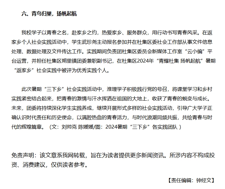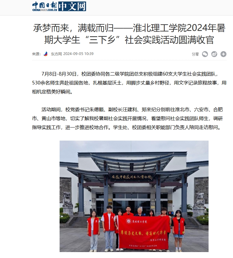 7月8日-8月30日,伟德国际victor1946官网校团委协同各二级学院团总支积极组建60支大学生社会实践团队,530余名师生奔赴祖国各地,扎根基层沃土,用脚步丈量乡村野径,用文字记录旅程故事,用相机定格美好瞬间。对此,中国日报网进行了报道:
