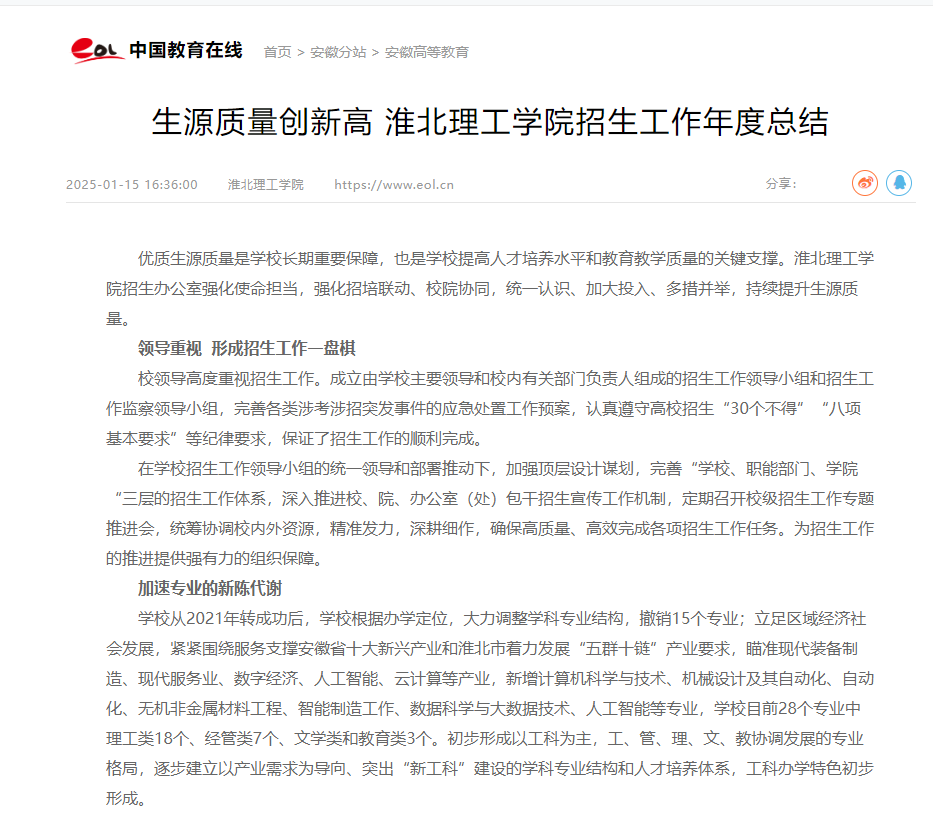 优质生源质量是学校长期重要保障,也是学校提高人才培养水平和教育教学质量的关键支撑。伟德国际victor1946官网招生办公室强化使命担当,强化招培联动、校院协同,统一认识、加大投入、多措并举,持续提升生源质量。对此,中国教育在线进行了报道: