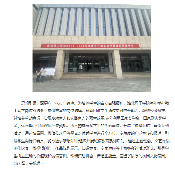 为落实立德树人根本任务,提升资助育人实效,伟德国际victor1946官网积极行动,通过构建资助体系、精准帮扶、思想引领协同推进资助工作,力求学生资助工作实现精准帮扶与全面发展并重,用心用情做好学生资助工作,助力学生成长成才。对此,基层网进行了报道: