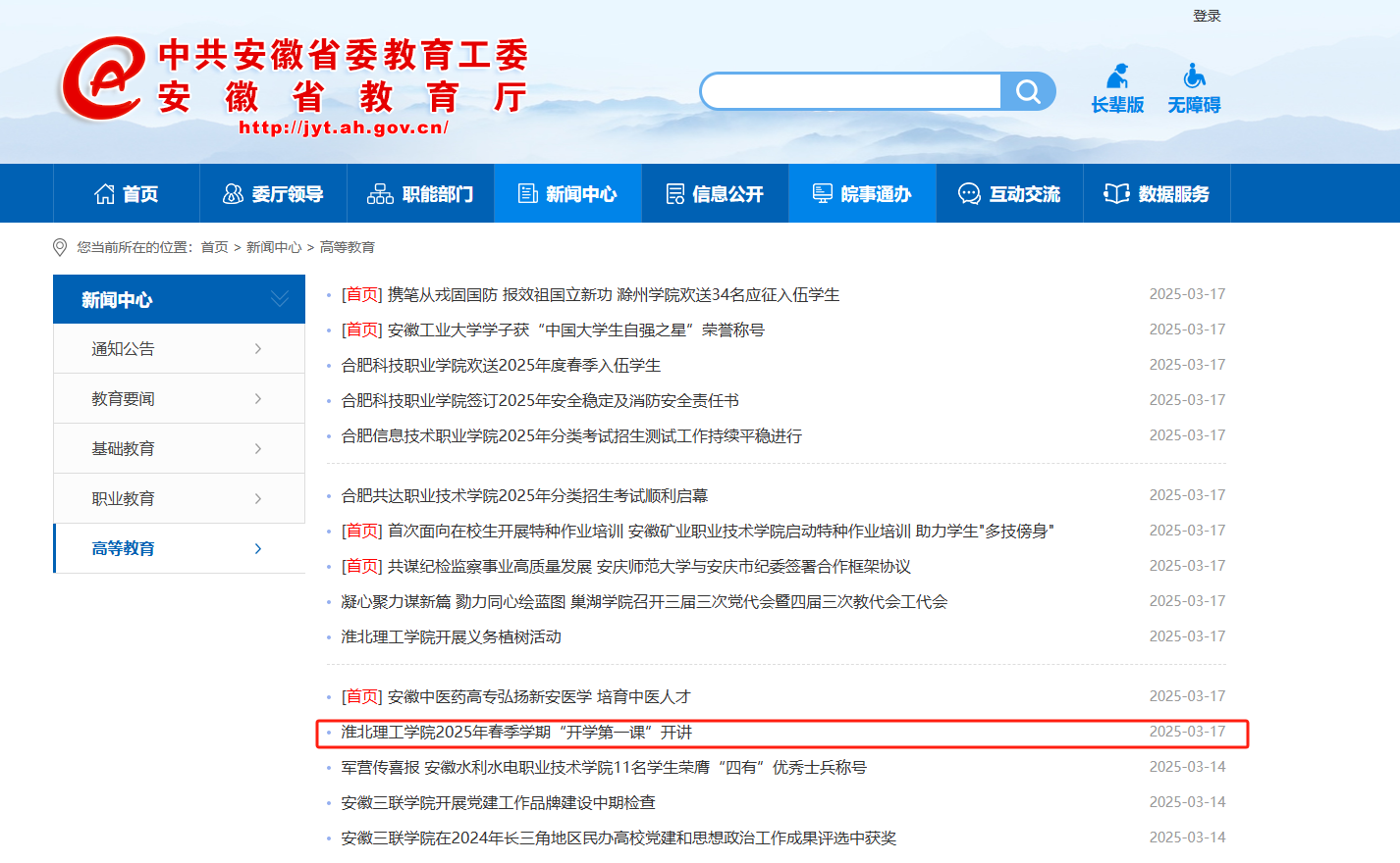 安徽省政府 安徽省教育厅 淮北市政府 淮北师范大学 淮北市教育局 中国教育和科研计算机网 国家高等教育智慧教育平台