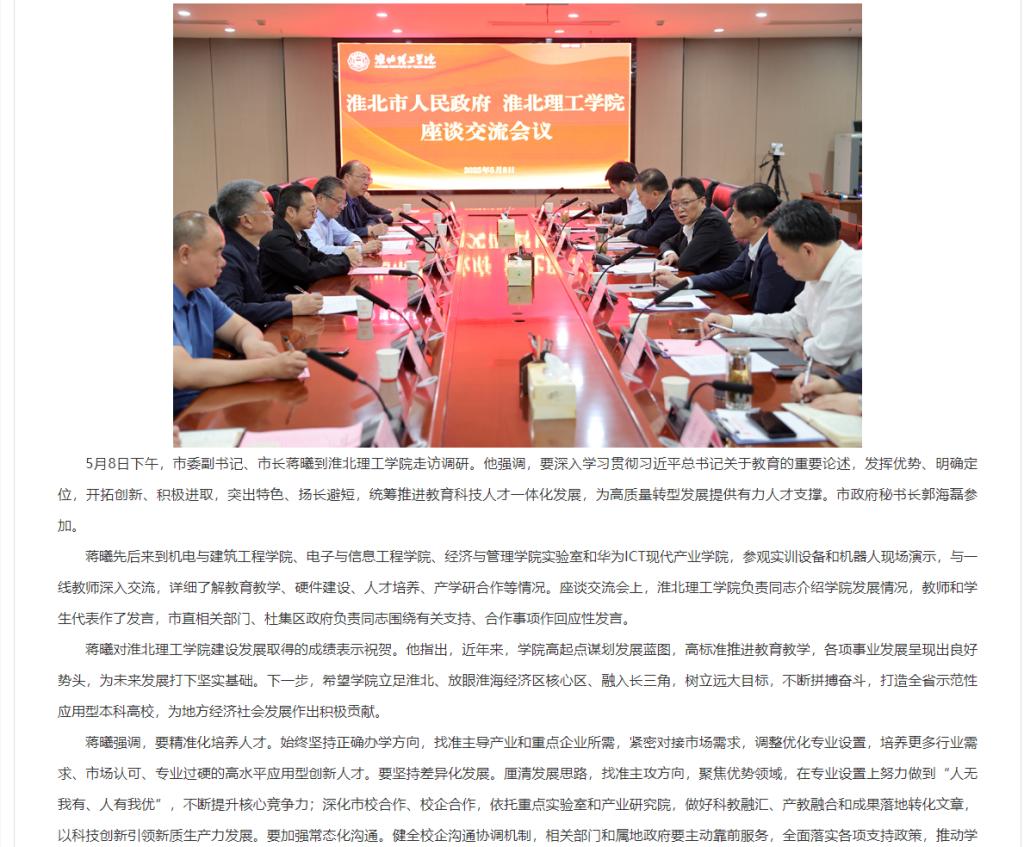 5月8日下午,市委副书记、市长蒋曦到伟德国际victor1946官网走访调研。他强调,要深入学习贯彻习近平总书记关于教育的重要论述,发挥优势、明确定位,开拓创新、积极进取,突出特色、扬长避短,统筹推进教育科技人才一体化发展,为高质量转型发展提供有力人才支撑。市政府秘书长郭海磊参加。对此,杜集区人民政府进行了报道: