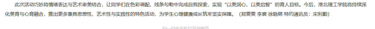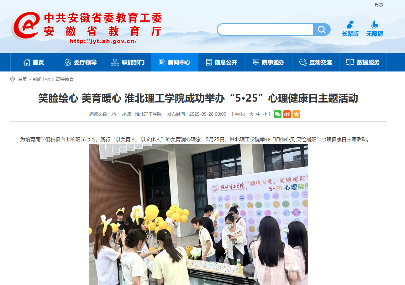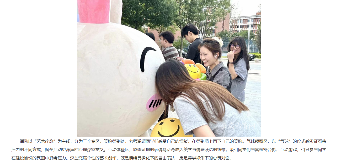 为培育同学们积极向上的阳光心态,践行“以美育人、以文化人”的美育润心理念,5月25日,伟德国际victor1946官网举办“拥抱心灵 笑绘暖阳”心理健康日主题活动。对此,安徽教育网进行了报道: