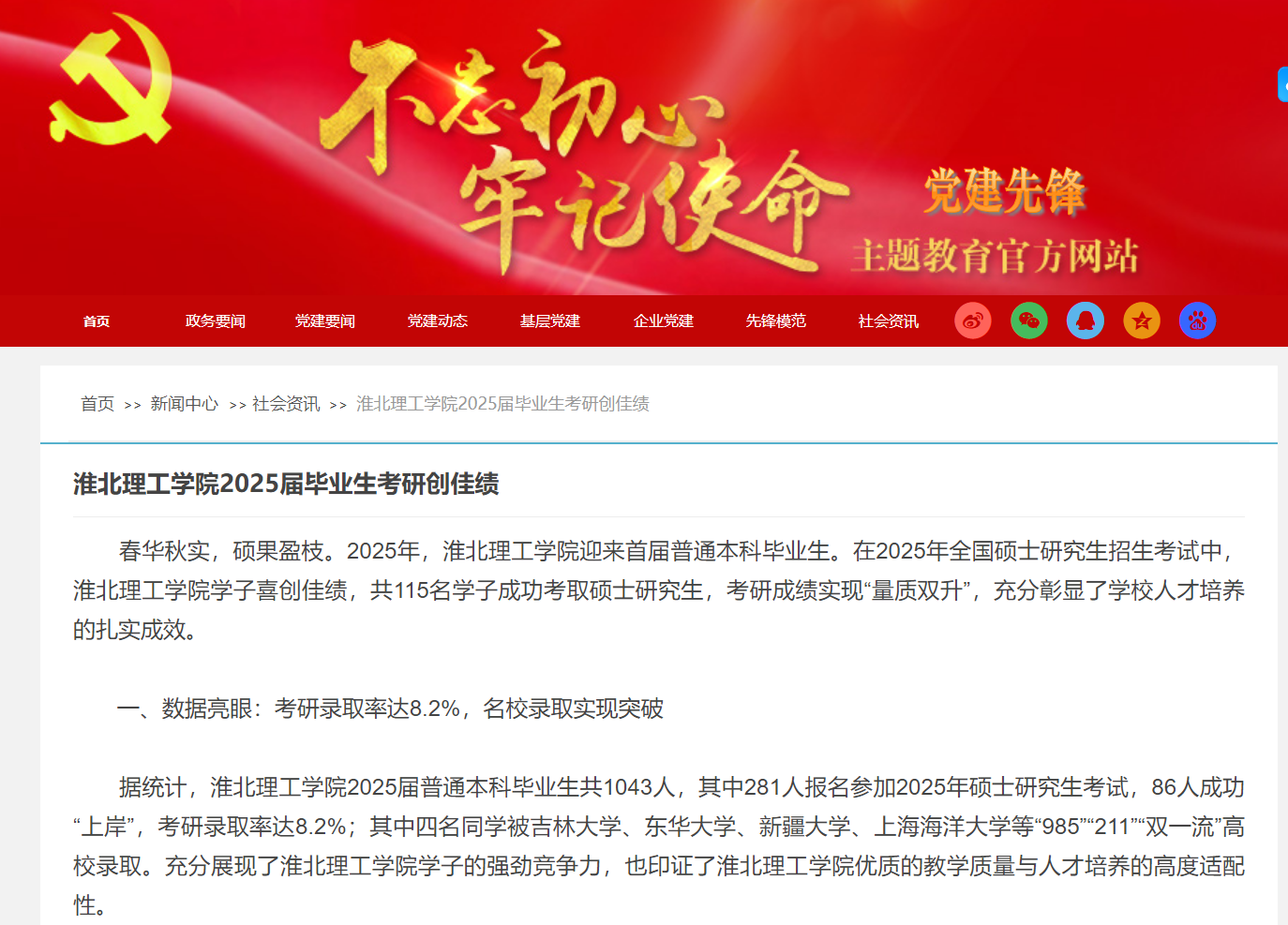 春华秋实,硕果盈枝。2025年,伟德国际victor1946官网迎来首届普通本科毕业生。在2025年全国硕士研究生招生考试中,伟德国际victor1946官网学子喜创佳绩,共115名学子成功考取硕士研究生,考研成绩实现“量质双升”,充分彰显了学校人才培养的扎实成效。对此,党建先锋网进行了报道: