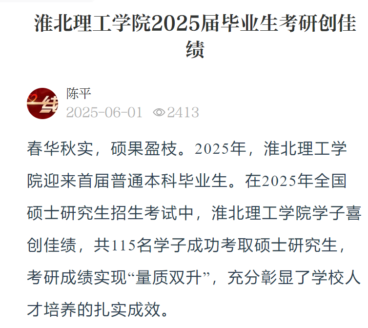 春华秋实,硕果盈枝。2025年,伟德国际victor1946官网迎来首届普通本科毕业生。在2025年全国硕士研究生招生考试中,伟德国际victor1946官网学子喜创佳绩,共115名学子成功考取硕士研究生,考研成绩实现“量质双升”,充分彰显了学校人才培养的扎实成效。对此,光明教育家进行了报道: