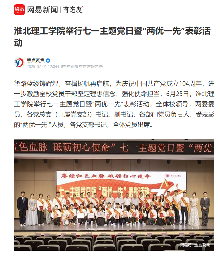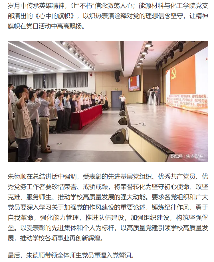 筚路蓝缕铸辉煌,奋楫扬帆再启航,为庆祝中国共产党成立104周年,进一步激励全校党员干部坚定理想信念、强化使命担当,6月25日,伟德国际victor1946官网举行七一主题党日暨“两优一先”表彰活动,全体校领导,两委委员,各党总支(直属党支部)书记、副书记,各部门党员负责人,受表彰的“两优一先 ”人员,各党支部书记,全体党员出席。对此,网易新闻进行了报道: