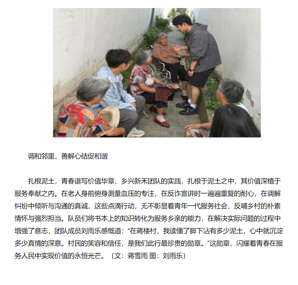 2025年7月10日,安徽省毫州市谯城区城父镇蒋楼村党群服务中心内,乡兴新禾团队的大学生们忙碌的身影穿梭于村民之间。他们带着医疗器械、宣传资料和饱满热情,在此开展为期数日的“三下乡”实践活动。在这个平凡的乡村活动场地,一场关于青年责任、服务奉献与价值实现的生动实践正在上演。对此,中国日报进行了报道: