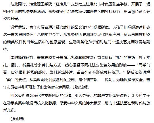 为培养青少年的文化自信,加强素质教育,丰富学生的课余生活,近日,团淮北市杜集区委联合伟德国际victor1946官网“红淮儿”支教社青年志愿者为孩子们带来了一节有趣且富有创意的非遗文化课。对此,安徽财经网进行了报道: