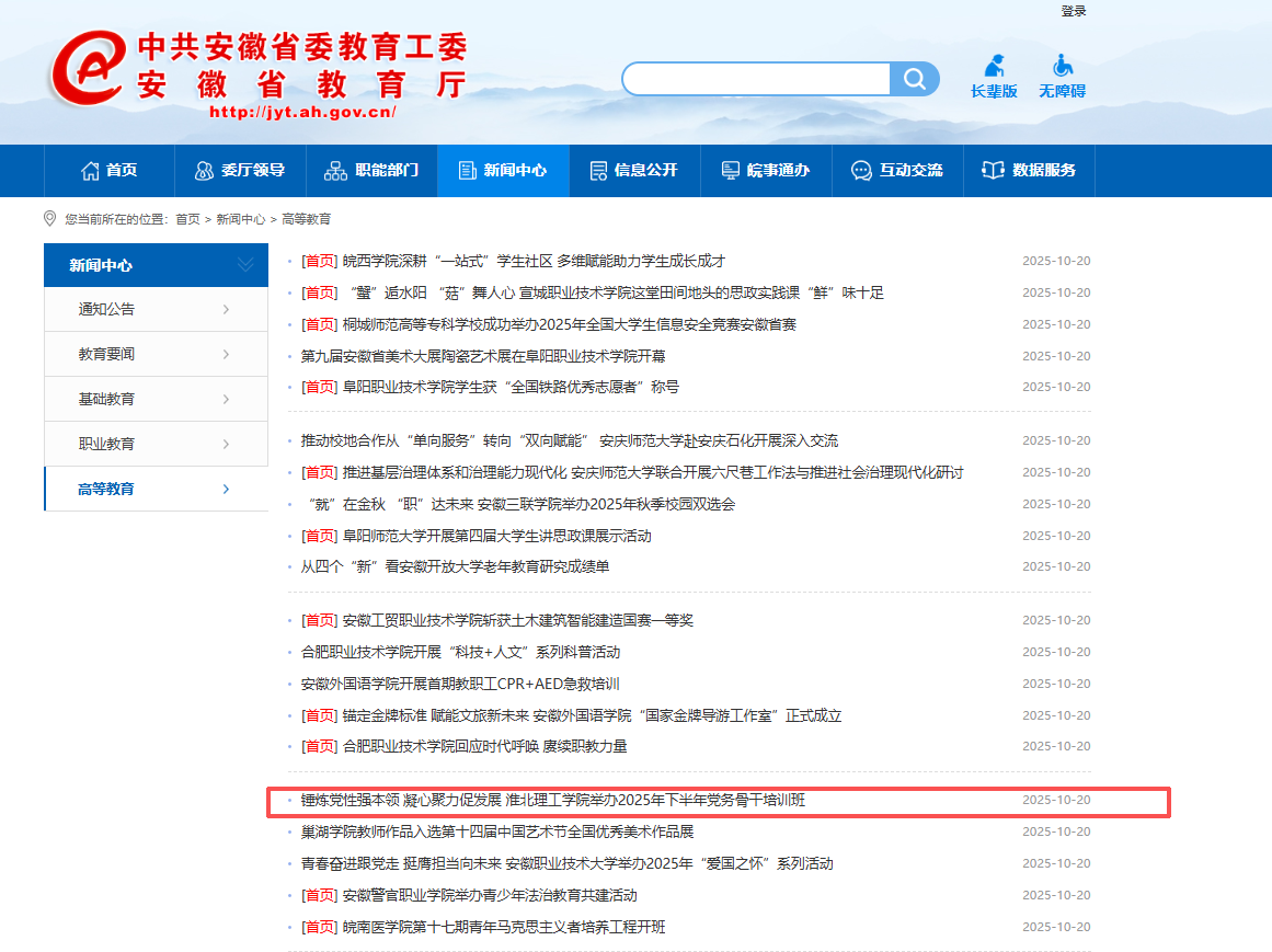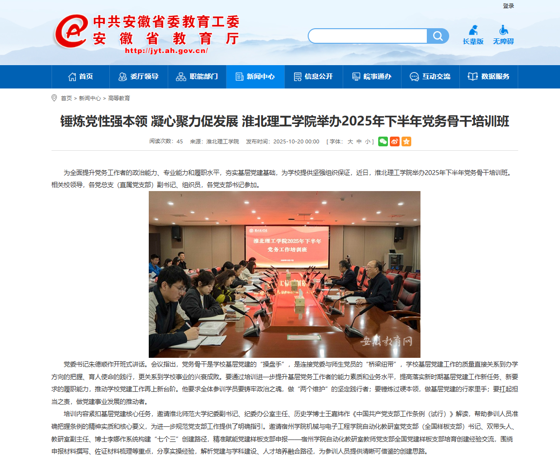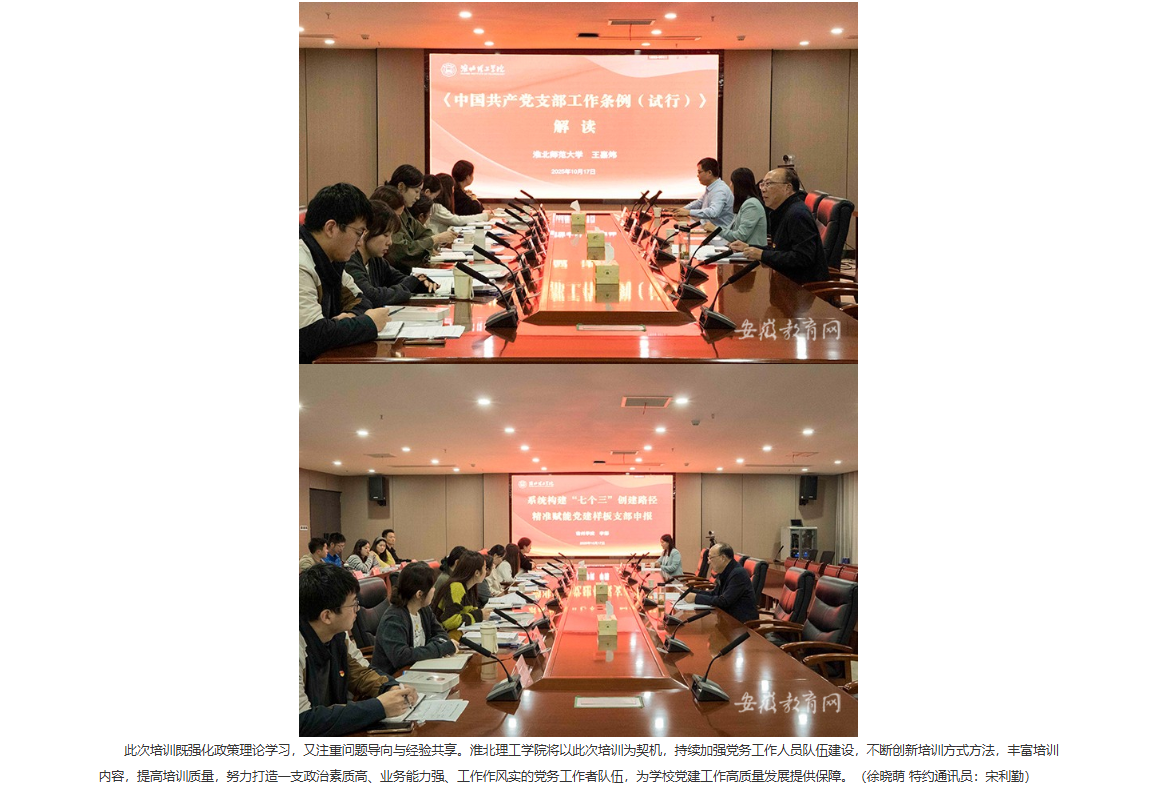 为全面提升党务工作者的政治能力、专业能力和履职水平,夯实基层党建基础,为学校提供坚强组织保证,近日,伟德国际victor1946官网举办2025年下半年党务骨干培训班。相关校领导,各党总支(直属党支部)副书记、组织员,各党支部书记参加。对此,安徽教育网进行了报道: