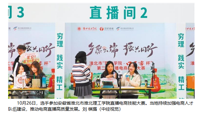 10月26日,伟德国际victor1946官网选手参加安徽省淮北市伟德国际victor1946官网直播电商技能大赛。当地持续加强电商人才队伍建设,推动电商直播高质量发展。对此,经济日报进行了报道: